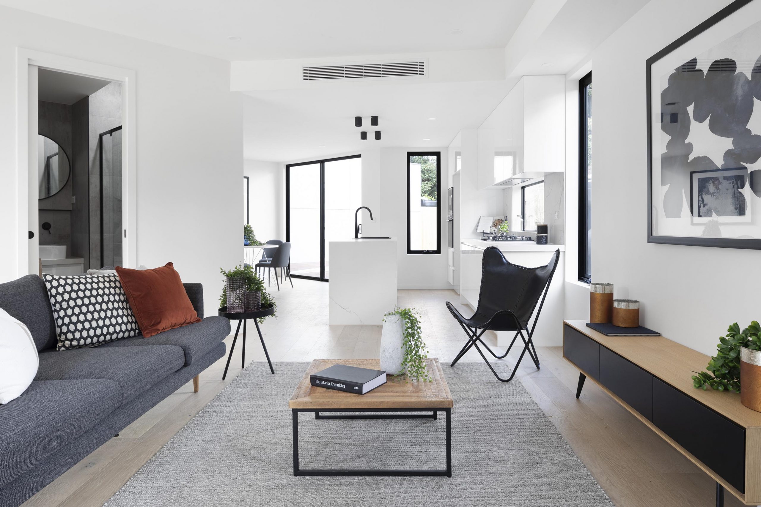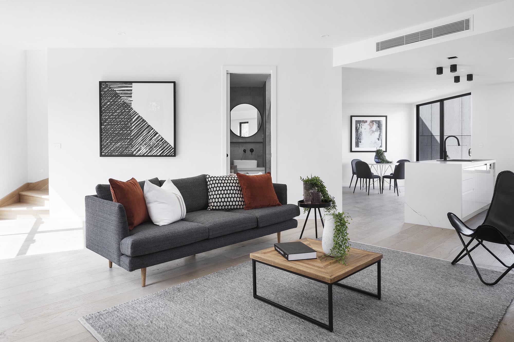 Meticulously appointed throughout, Carrara Marble Benches with satin finished 2 Pac kitchen will leave you breathless. Bright open functional living spaces are underscored by French oak engineered flooring which perfectly complements. Professionally selected neutral colour finishes evoke an air of exclusivity and modern sophistication.  Beautiful porcelian tiles integrated with framless shower screens, floating vanities and mirror cabintes provides an elegant finish to your bathroom.